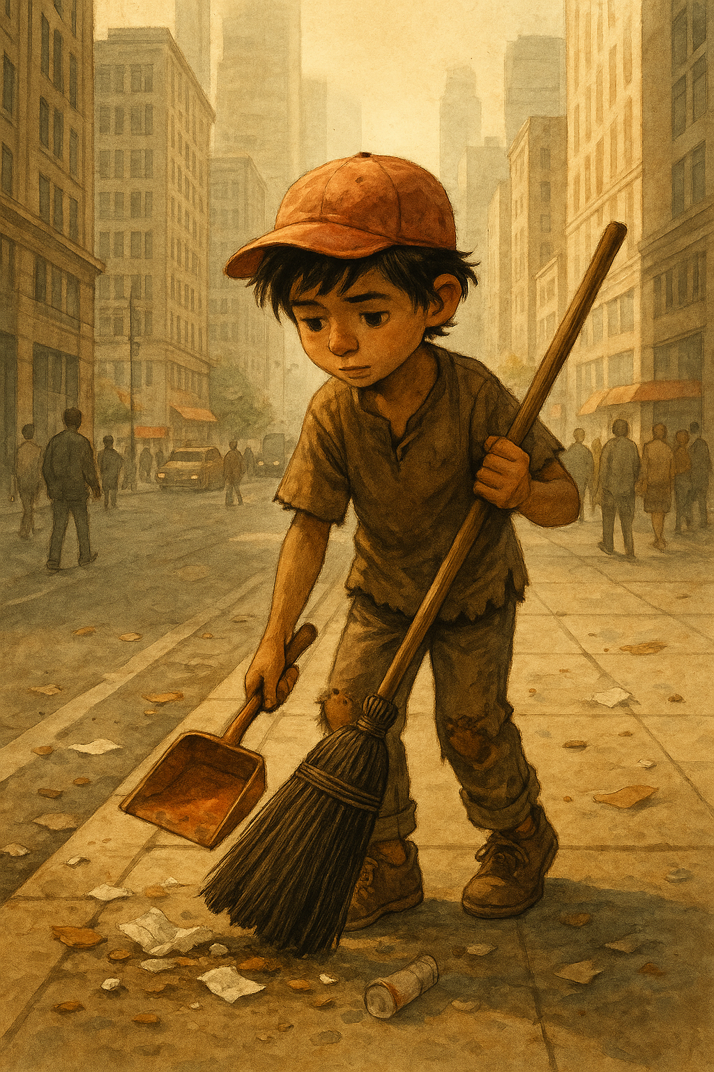 Every morning, before the sun even peeked over the skyline, Miguel would wake up and grab his worn-out broom and small dustpan. With a determined spirit, he walked through the city’s crowded streets, cleaning trash and sweeping sidewalks. Though his hands were small and his clothes tattered, Miguel took pride in his work. He believed that even a little bit of cleanliness could bring beauty to a city often overlooked by its busy inhabitants.