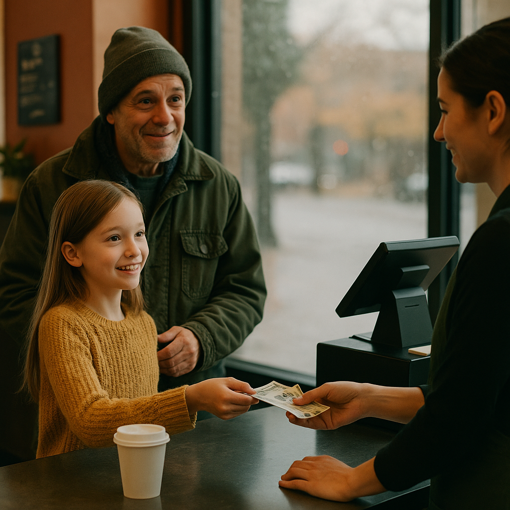 It was a rainy morning when twelve-year-old Mia walked into the neighborhood café with a few crumpled bills in her pocket. She had saved up to treat herself to a hot chocolate after acing her math test.